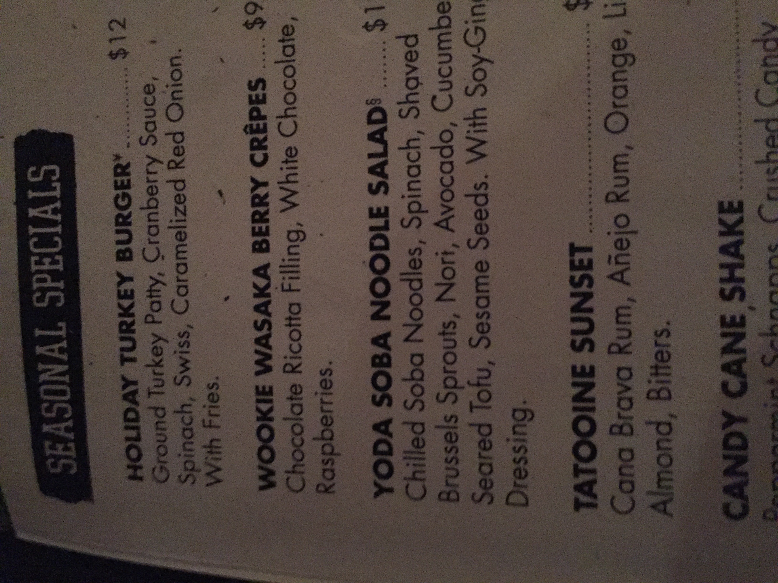 - 10:40 AM. I walked into theater #4, grabbed my seat and ordered off of the Star Wars-themed menu.